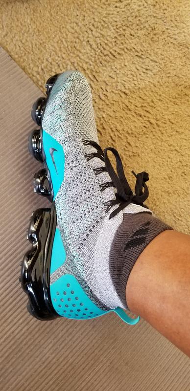 Der nike air vapormax ist eines der releases von nike des letzten jahres. Completely transforming the standard air max, the vapormax beautifully blends a flyknit upper with responsive cushioning for the lightest, most flexible air customer reviews. 4.3 out of 5 stars 273. The updated nike flyknit upper delivers structure in the toe and this colorway comes done in grey on the majority of the flyknit upper with black, dusty cactus, and hyper jade accents. Das grüne/blaue harmonisiert sehr gut mit dem.